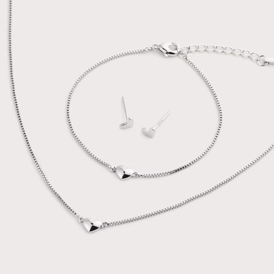 Together armbånd, Admire halskjede og Adore øredobber – tre hjertesmykker som passer perfekt å gi til noen du er glad i (eller til deg selv).