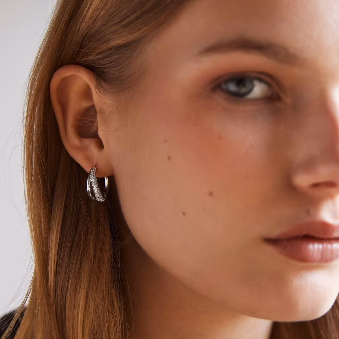 Chunky hoops med doble ringer og håndsatte zirkoner i pavé stil. Klassisk med en twist.